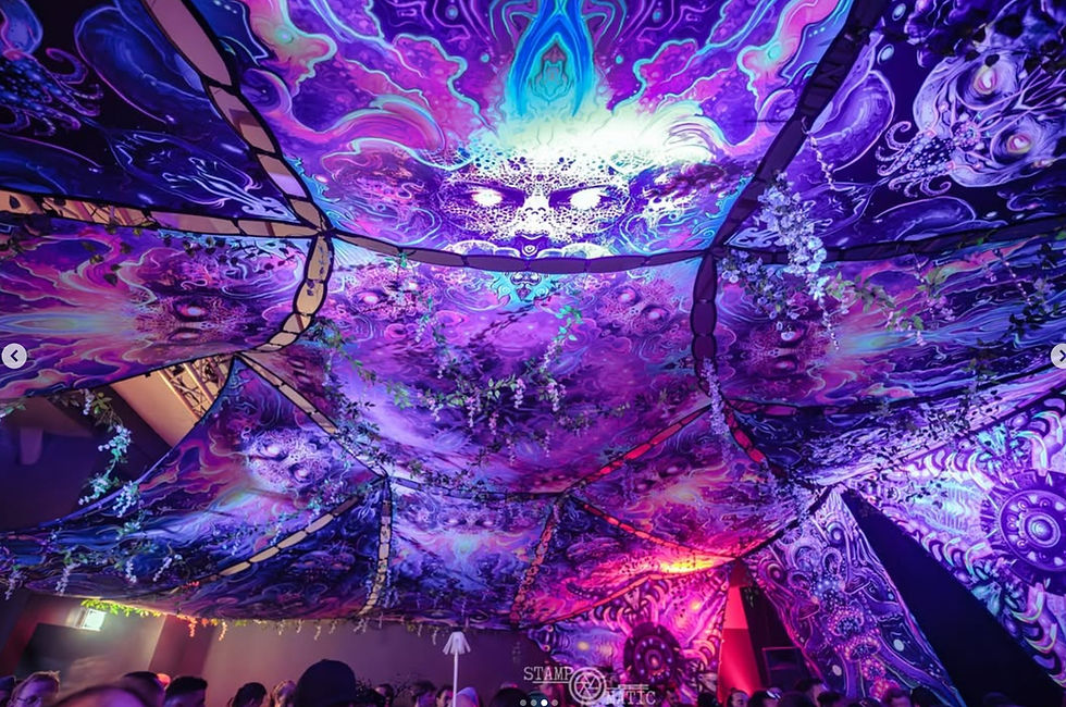 Freedom Raves is a Swiss-based deco project dedicated to creating immersive psychedelic environments for raves and festivals. Their work transforms dancefloors into living, breathing worlds of color, light and texture, where music and visuals merge into one experience.